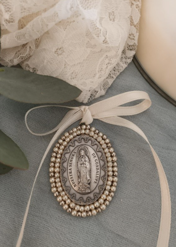 El cunero mide 5cm de alto y 4cm de ancho. Esta cosido con alambre y perlitas de rio y vidrios checos. Tiene encaje en la parte de atras. Opcion de cinta bebe o cinta de encaje. Se vende con atril de piedra, de madera o solo.