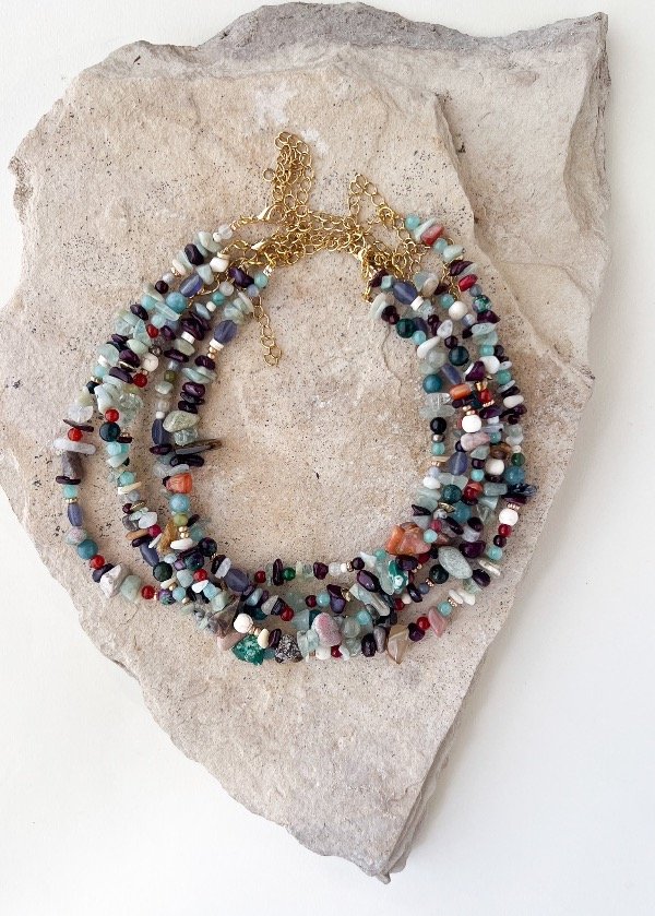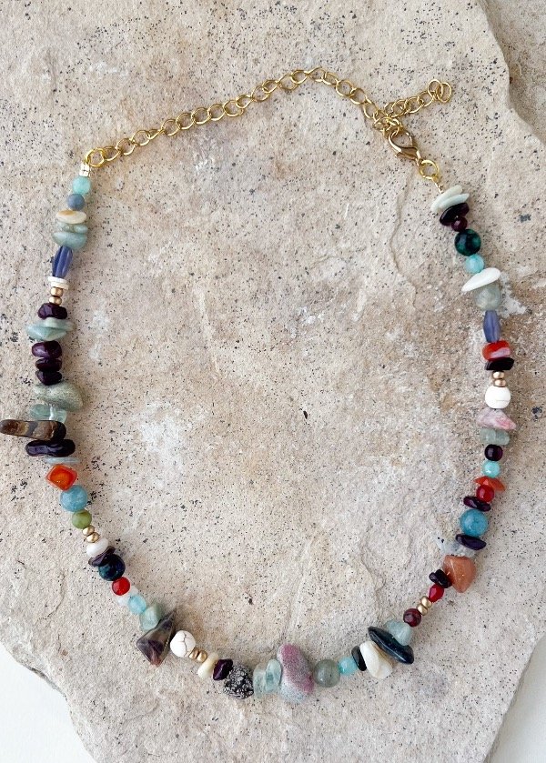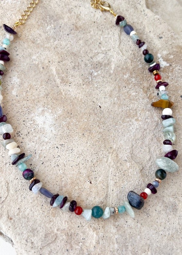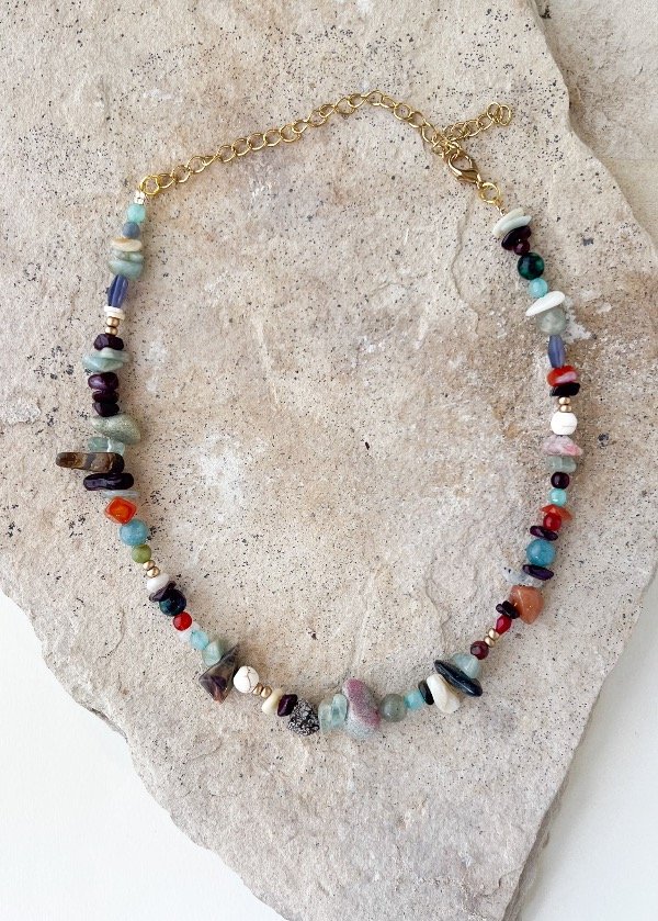 Collar de 35cm + 6cm de alargue. Piedra sa varias multicolor. Son todos distintos con una misma tonalidad.