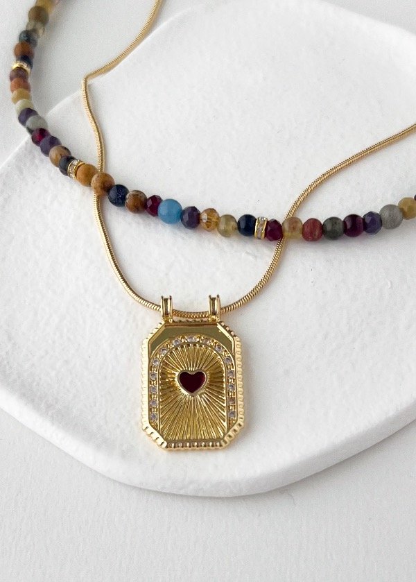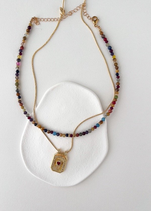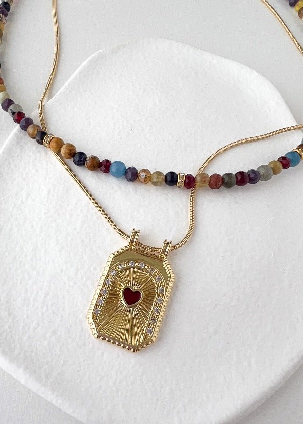 Incluye dos piezas: un collar juana dije Sagrado Corazón. Las dos piezas se puede usar juntas o cada una por separado, no están atadas entre sí.