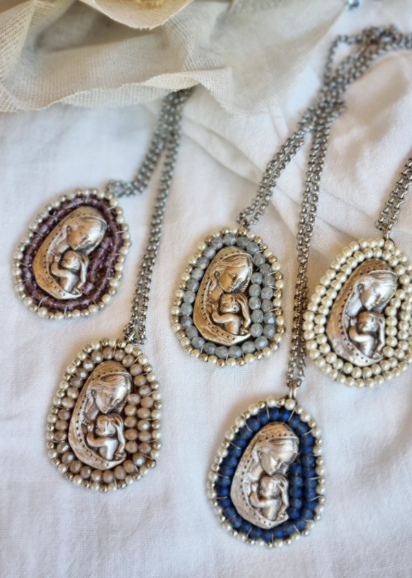 la medalla de la virgen madre mide 5cm de largo, es GRANDE, se vende como cunero o con cadena para usar colgada. Es grande para ser colgada, no es una medalla standard.