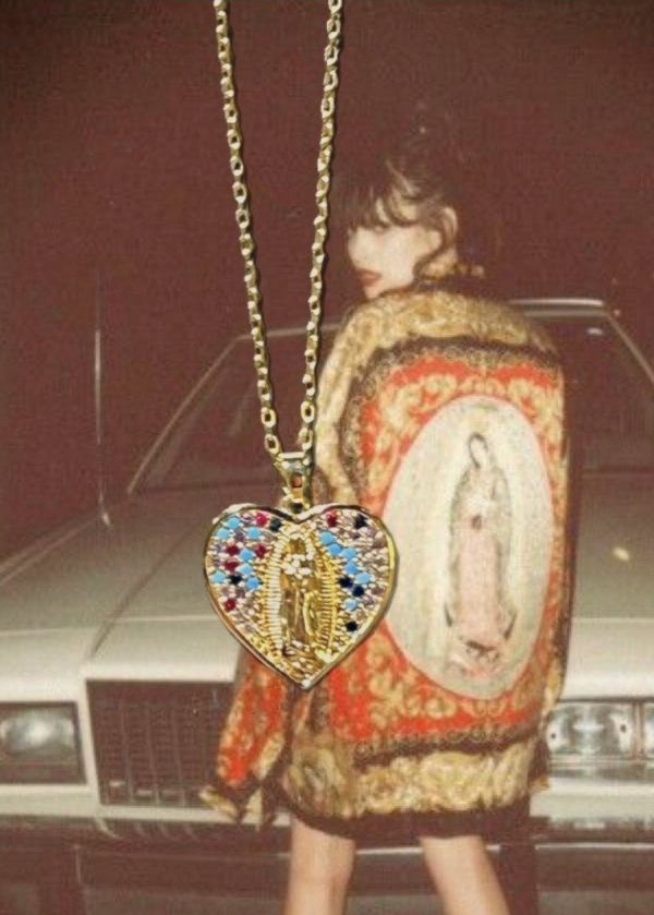 cadena + medalla de Guadalupe bañada en oro, con mini strass