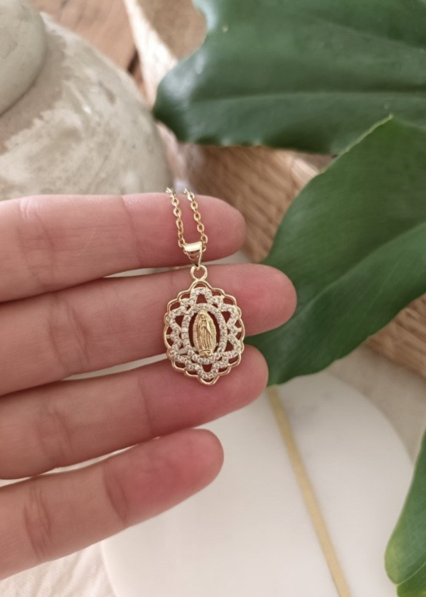 cadena + medalla Milagrosa bañada en oro, con mini strass