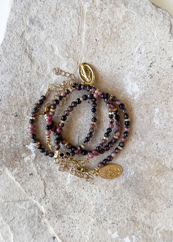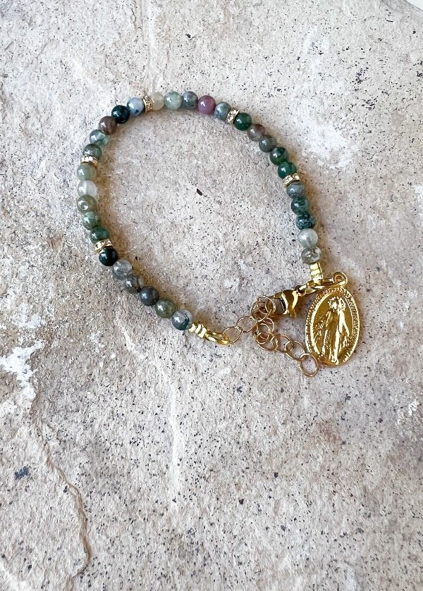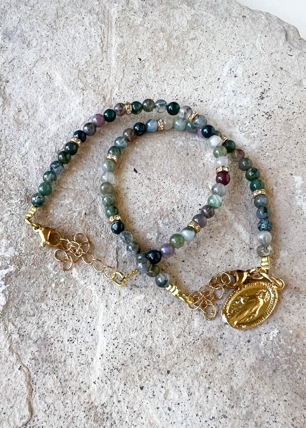 pulsera de piedras agata, tiene 4cm de alargue, puede ser con o sin medalla y viene en dos colores
