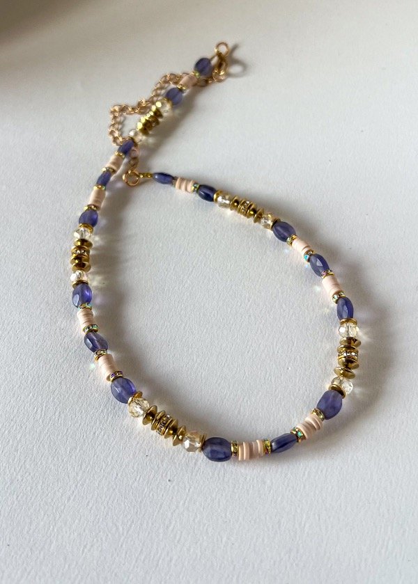 Collar de piedra ágata y fino crudo. La medida del collar es de 36cm + 12cm de alargue