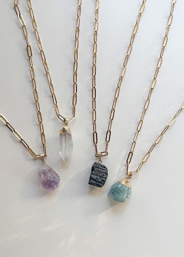 cadena de eslabones larga de 70cm bañada en oro + piedras. La cadena se puede abrochar en el eslabon que quieran, entonces se puede usar más corta
