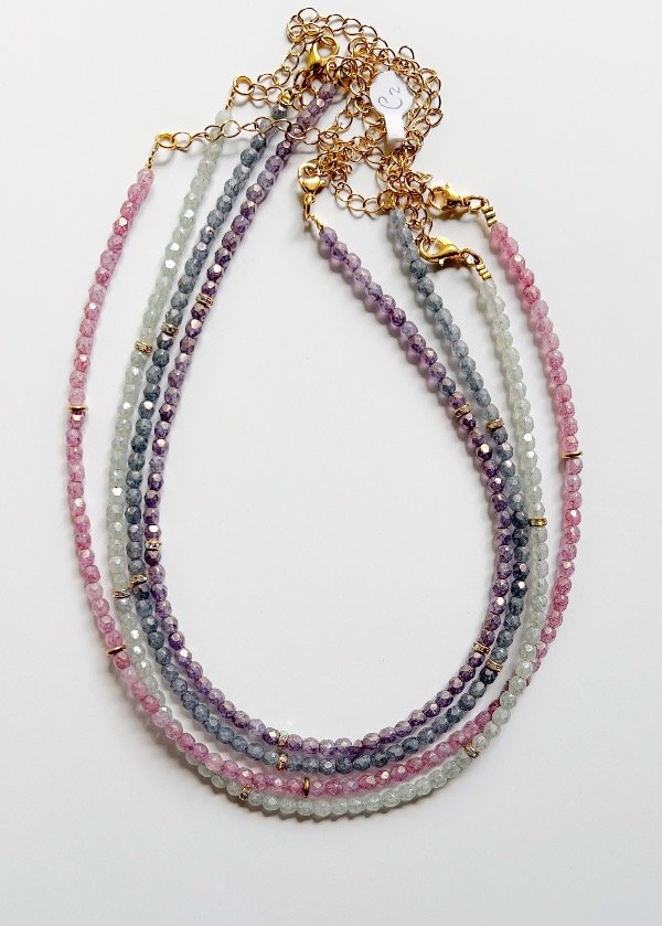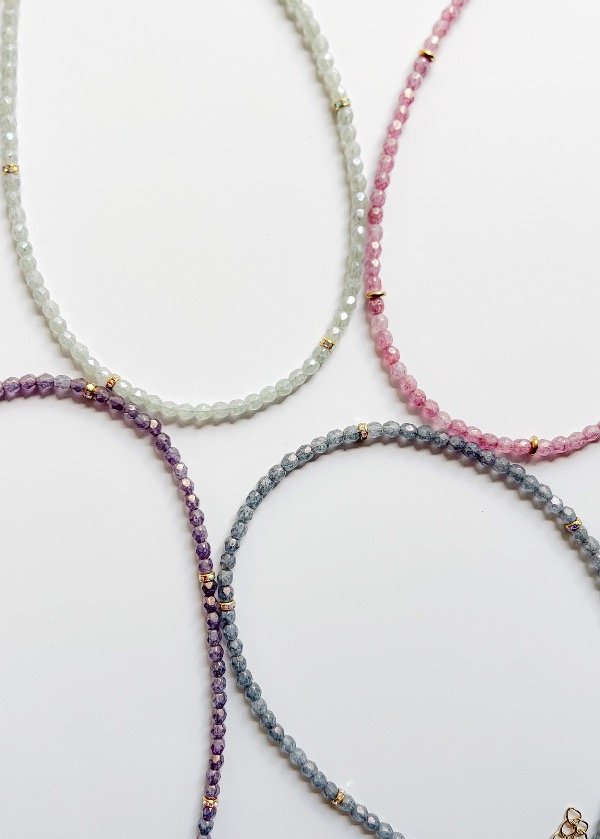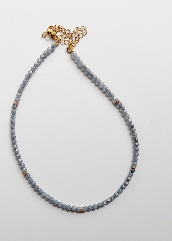 Collar de 35cm de vidrios checos con apliques de strass + 6cm de alargue. Viene en varios colores.