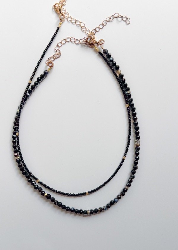 Collar de piedra onix pulida, color negro, viene con 10cm de alargue
