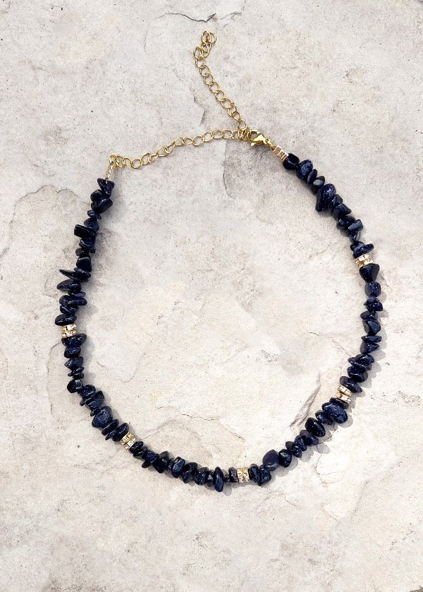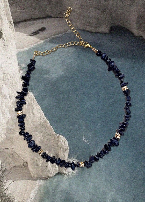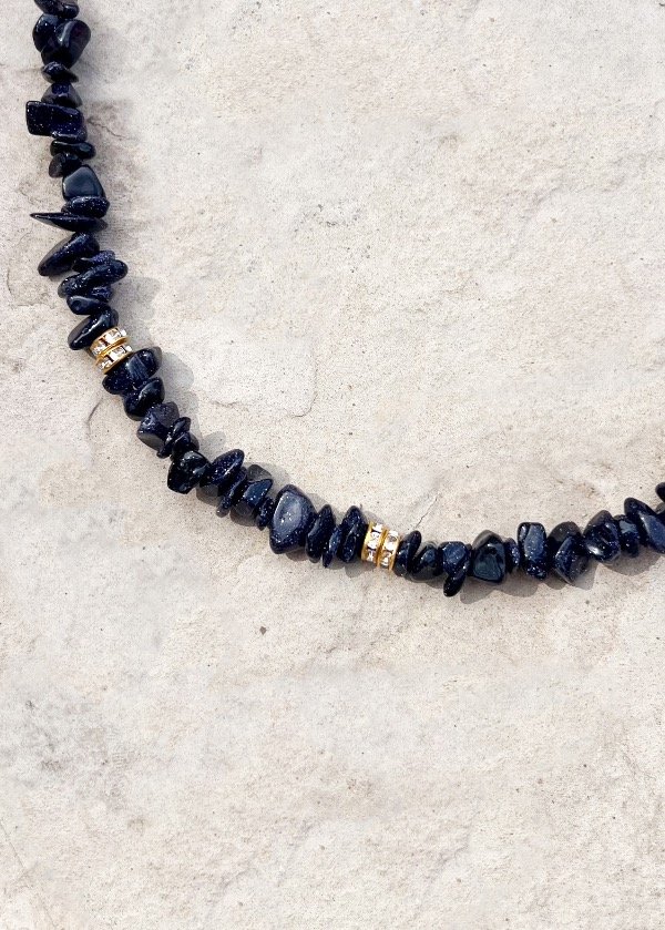 Collar de escallas de piedra azul aventurina combinado con strass.