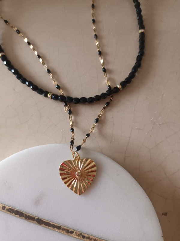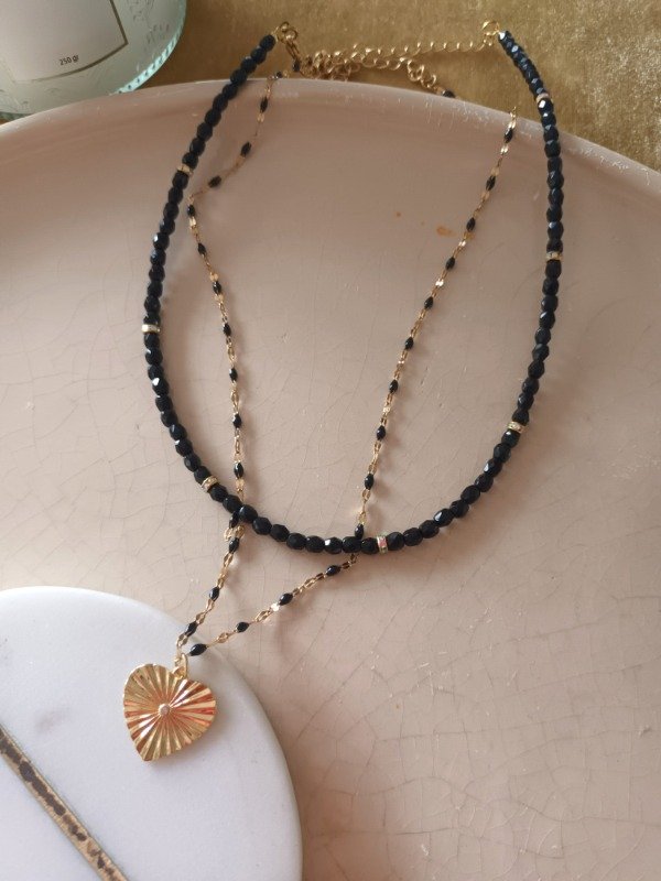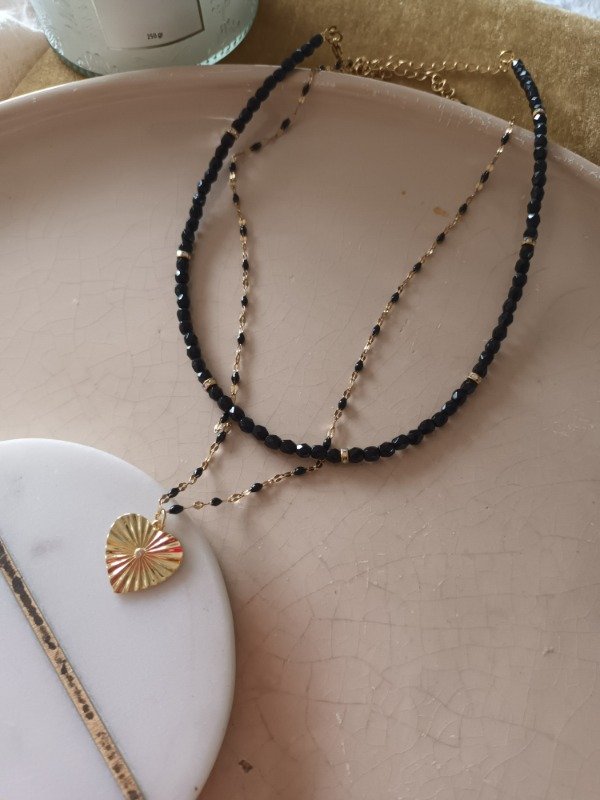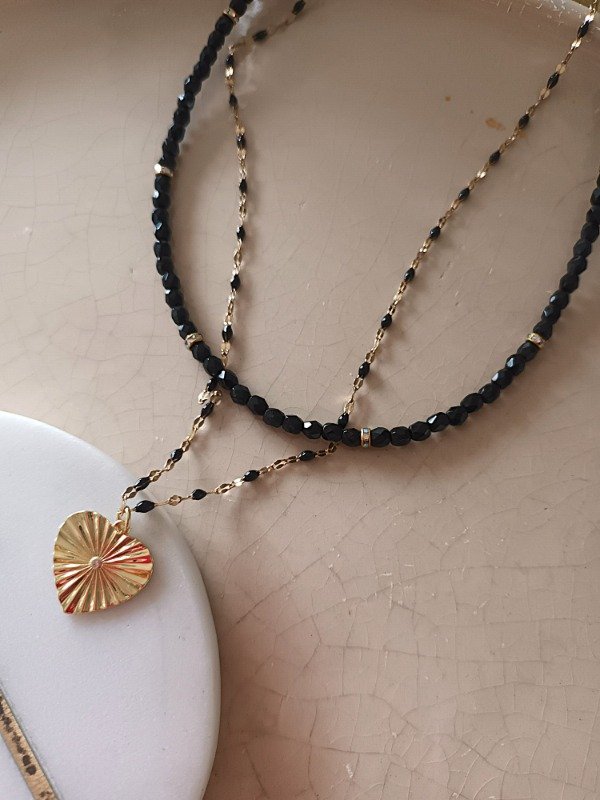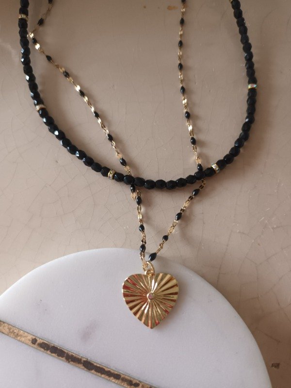 El dúo incluye un collar onix mini negro y una cadena trendy negra con dije de corazón bañado en oro.