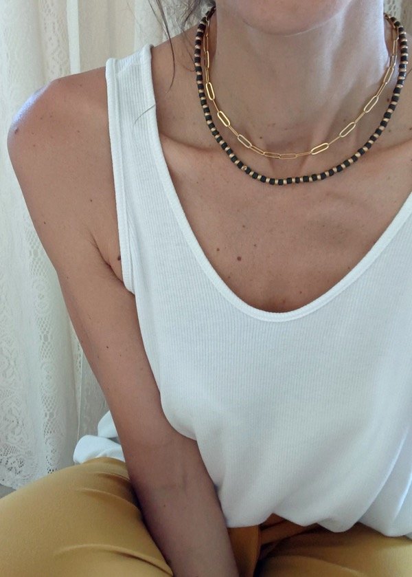 Incluye un collar Maika y una cadena jaz bañada en oro
