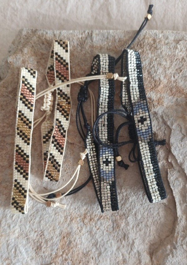 pulseras hechas con mostacillas, con un diseño geométrico delicado y elegante