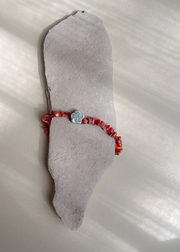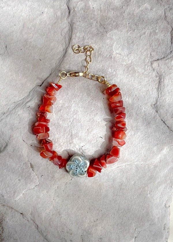 pulsera de escallas naranjas con detalle de flor de cerámica
