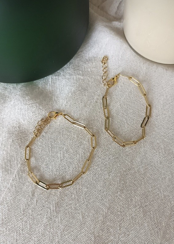 Pulsera cadena de eslabones bañada en oro, largo de 15cm + alargue. Esta pulsera es ideal para acompañar y dar brillo a cualquier conjunto de pulseras.