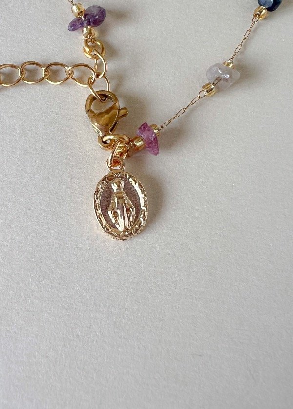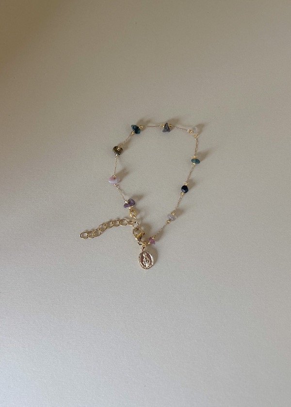 Pulsera cadena de piedritas bañada en oro, largo de 15cm + alargue